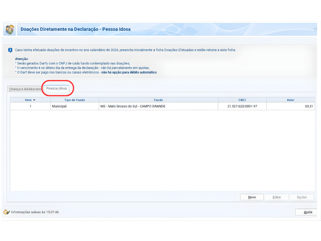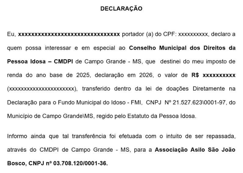 Clique AQUI para fazer o download do modelo de declaração de doação.